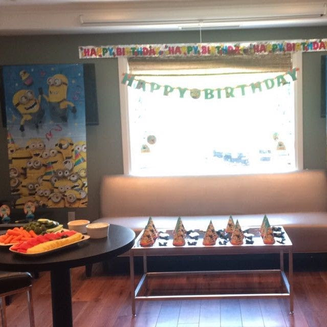 Includes: arrival fruit and veggie platter, smoothies, main meal and dessert, as well as standard birthday decorations (birthday banner, balloons, streamers and birthday themed plates, cups and napkins)